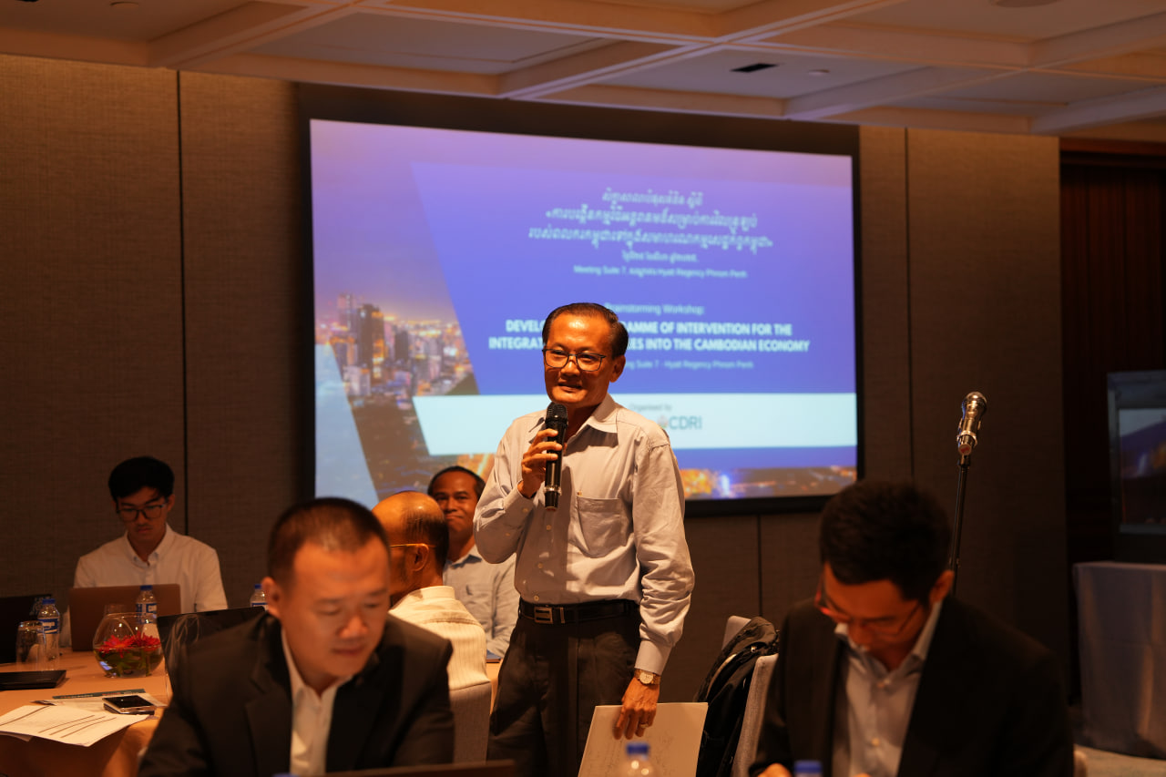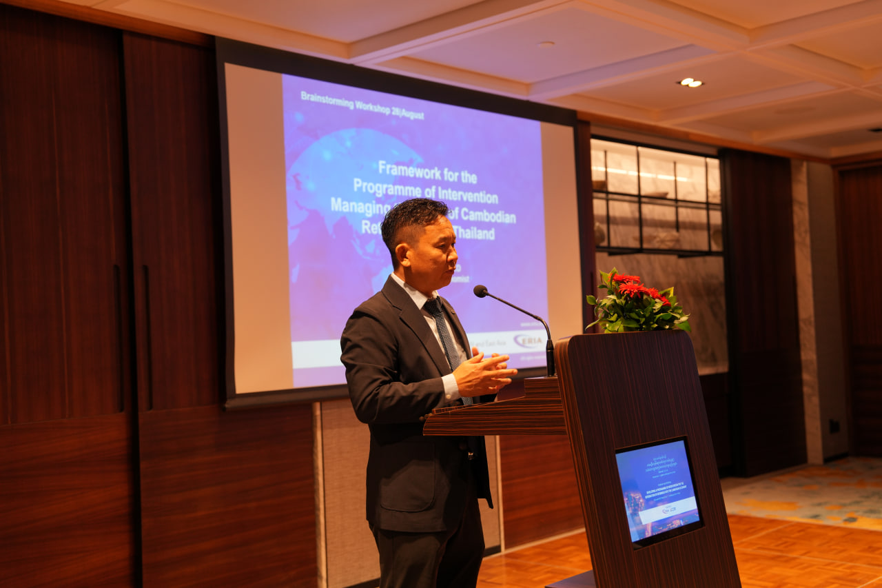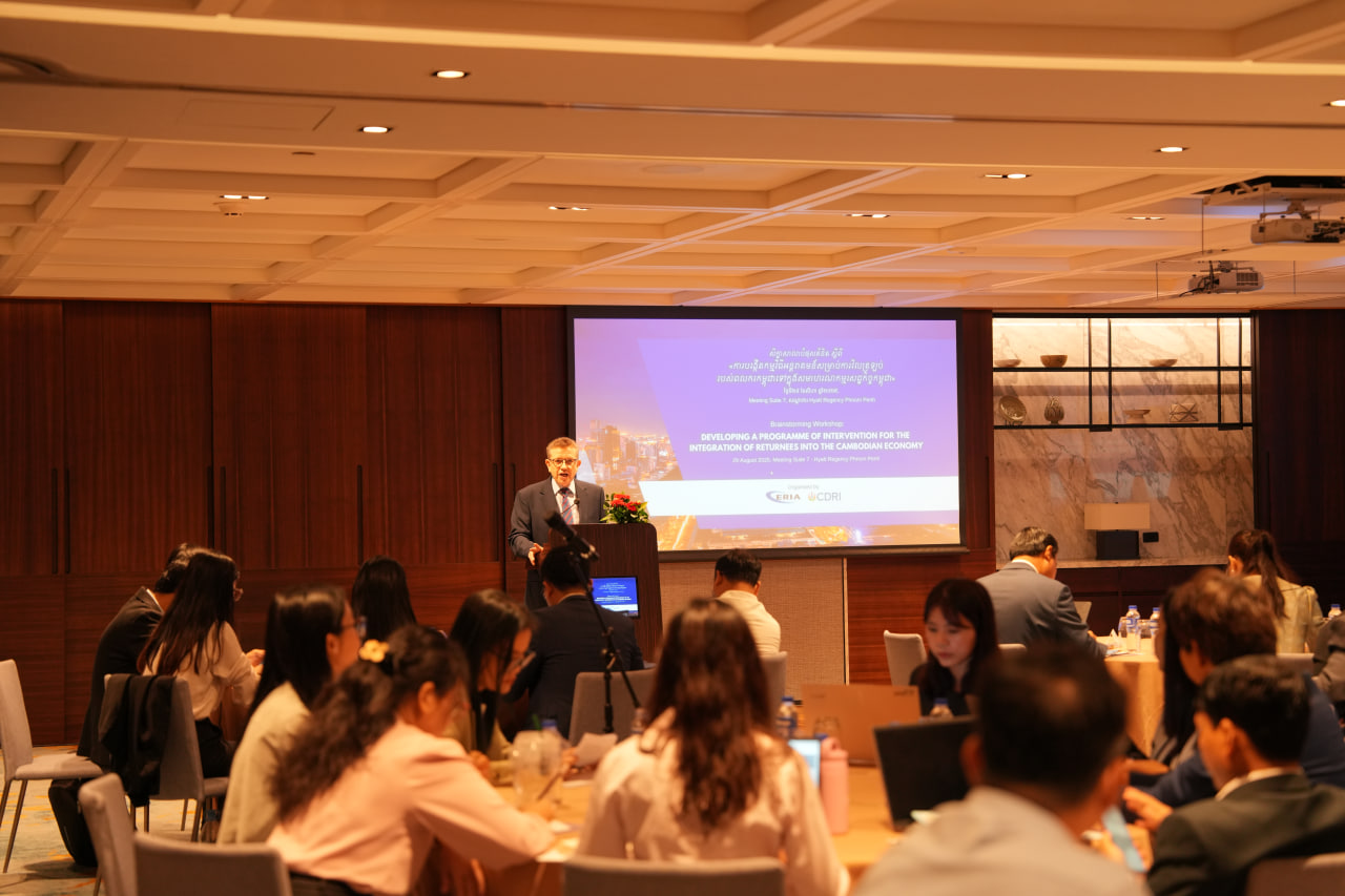 On 29 August 2025, CDRI, in collaboration with the Economic Research Institute for ASEAN and East Asia (ERIA), hosted a Brainstorming Workshop with Cambodian Line Ministries on “Developing a Programme of Intervention for the Integration of Returnees into the Cambodian Economy.” The workshop brought together key stakeholders, including the Ministry of Labour and Vocational Training, Ministry of Economy and Finance, Council for the Development of Cambodia, Office of the Council of Ministers, Ministry of Industry, Science, Technology and Innovation, National Bank of Cambodia, Ministry of Public Works and Transport, Ministry of Agriculture, Forestry and Fisheries, ILO, IOM, Skills Development Fund, and others.