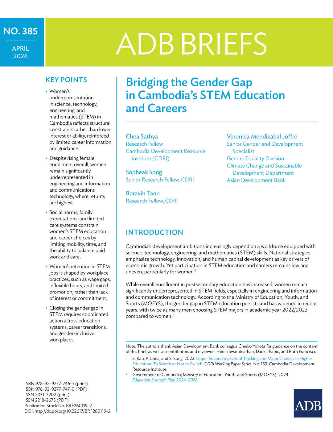 - Women’s underrepresentation in science, technology, engineering, and mathematics (STEM) in Cambodia reflects structural constraints rather than lower interest or ability, reinforced by limited career information and guidance.
