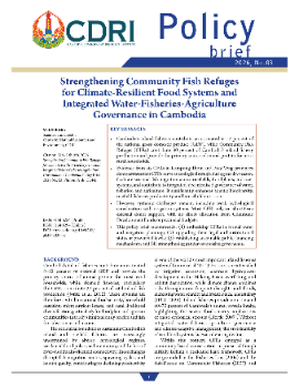 This working paper examines the role of Community Fish Refuges (CFRs) in promoting the integration of water, land, and aquatic food systems in Cambodia, drawing on six case studies in the Tonle Sap floodplain and Mekong Delta. Situated within rice-field and floodplain landscapes, CFRs function as dry-season refuges, wet-season spawning grounds, and hydrological connectors linking rivers, irrigation systems, and rice fields. Using mixed methods—including key informant interviews, focus group discussions, and participatory mapping—the study analyses ecological, hydrological, and governance dimensions of CFR systems. Findings show that perennial, seasonally expanding, and ephemeral CFRs perform complementary ecological functions that sustain fisheries productivity and biodiversity under changing flood regimes. Beyond conservation, CFRs contribute to irrigation management, rice farming, and local food security when embedded within integrated governance arrangements involving District Technical Working Groups and water user communities. The study concludes that CFRs represent viable landscape-level models for decentralised, climate-resilient resource governance in Cambodia’s floodplain and delta systems.
