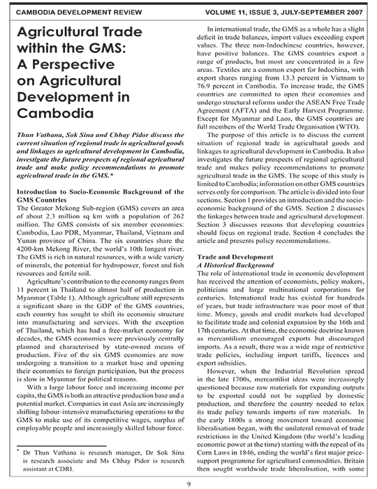 Agricultural Trade within the GMS: A Perspective on Agricultural Development in Cambodia