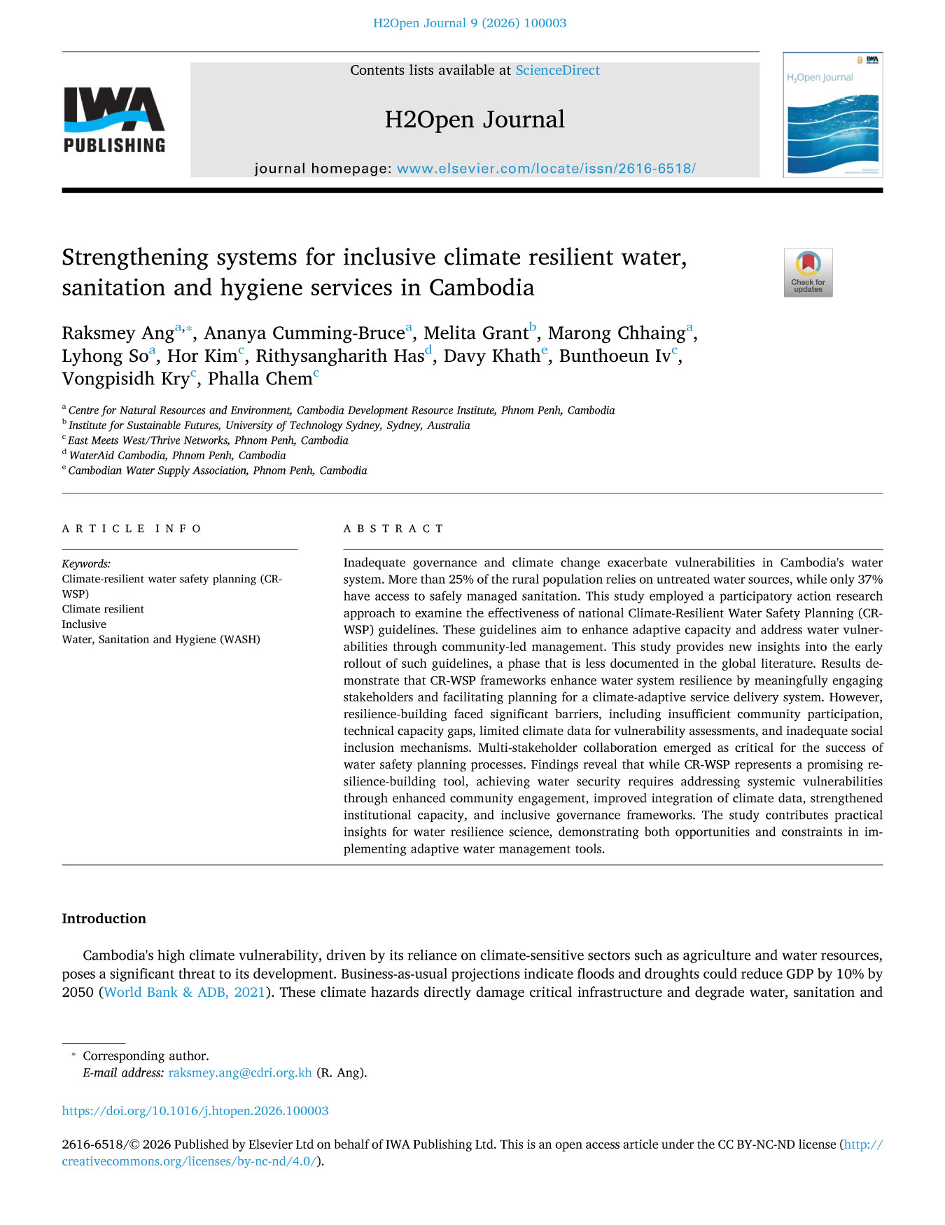 Inadequate governance and climate change exacerbate vulnerabilities in Cambodia's water system. More than 25% of the rural population relies on untreated water sources, while only 37% have access to safely managed sanitation. This study employed a participatory action research approach to examine the effectiveness of national Climate-Resilient Water Safety Planning (CR-WSP) guidelines. These guidelines aim to enhance adaptive capacity and address water vulnerabilities through community-led management. This study provides new insights into the early rollout of such guidelines, a phase that is less documented in the global literature. Results demonstrate that CR-WSP frameworks enhance water system resilience by meaningfully engaging stakeholders and facilitating planning for a climate-adaptive service delivery system. However, resilience-building faced significant barriers, including insufficient community participation, technical capacity gaps, limited climate data for vulnerability assessments, and inadequate social inclusion mechanisms. Multi-stakeholder collaboration emerged as critical for the success of water safety planning processes. Findings reveal that while CR-WSP represents a promising resilience-building tool, achieving water security requires addressing systemic vulnerabilities through enhanced community engagement, improved integration of climate data, strengthened institutional capacity, and inclusive governance frameworks. The study contributes practical insights for water resilience science, demonstrating both opportunities and constraints in implementing adaptive water management tools.