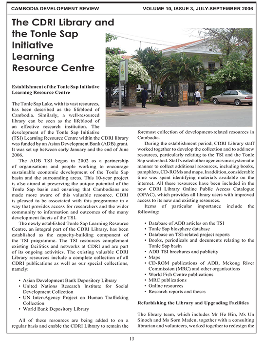 The CDRI Library and the Tonle Sap Initiative Learning Resource Centre