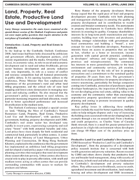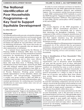 Cambodia 2008 and Beyond: Public-Private Partnership