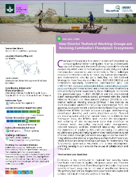 Cambodia’s floodplains face chronic water conflicts driven by competing demands for rice irrigation, fisheries, and domestic use. Left unresolved, these conflicts degrade multi-functional ecosystems, which undermine food system productivity, ecological resilience, local economies, and social relations. These challenges constrain Cambodia’s ability to reach key human development and environmental s...